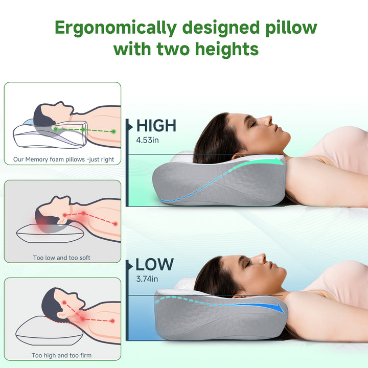 Fcinos Ergonomic Memory Foam Bed Pillow redefines restorative sleep with its advanced, bed-exclusive design. Crafted for those battling neck pain, poor posture, or night sweats, this cervical pillow merges cooling gel-infused memory foam with a dual-height structure to adapt seamlessly to your sleep style.