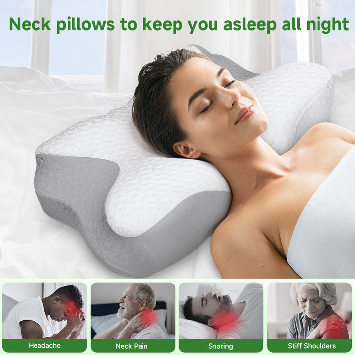 Bed pillows for Cervical Pillow for Neck Pain Relief, Odorless Orthopedic Memory Foam Contour Neck Pillows with Breathable Pillowcase for Side Back Stomach Sleepers, DarkGrey